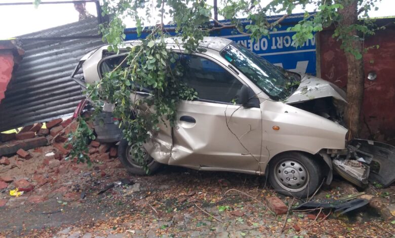 दारूच्या नशेत बेदरकार कारचालकाची धडक!विमानतळाच्या सुरक्षा भिंतीवर आदळली कार