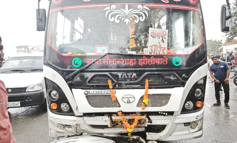 उमरेड रोडवर भीषण अपघात : खासगी बसने मोटारसायकलला दिली धडक; दोन जखमी, संतप्त नागरिकांनी बसचालकाला धोपटले